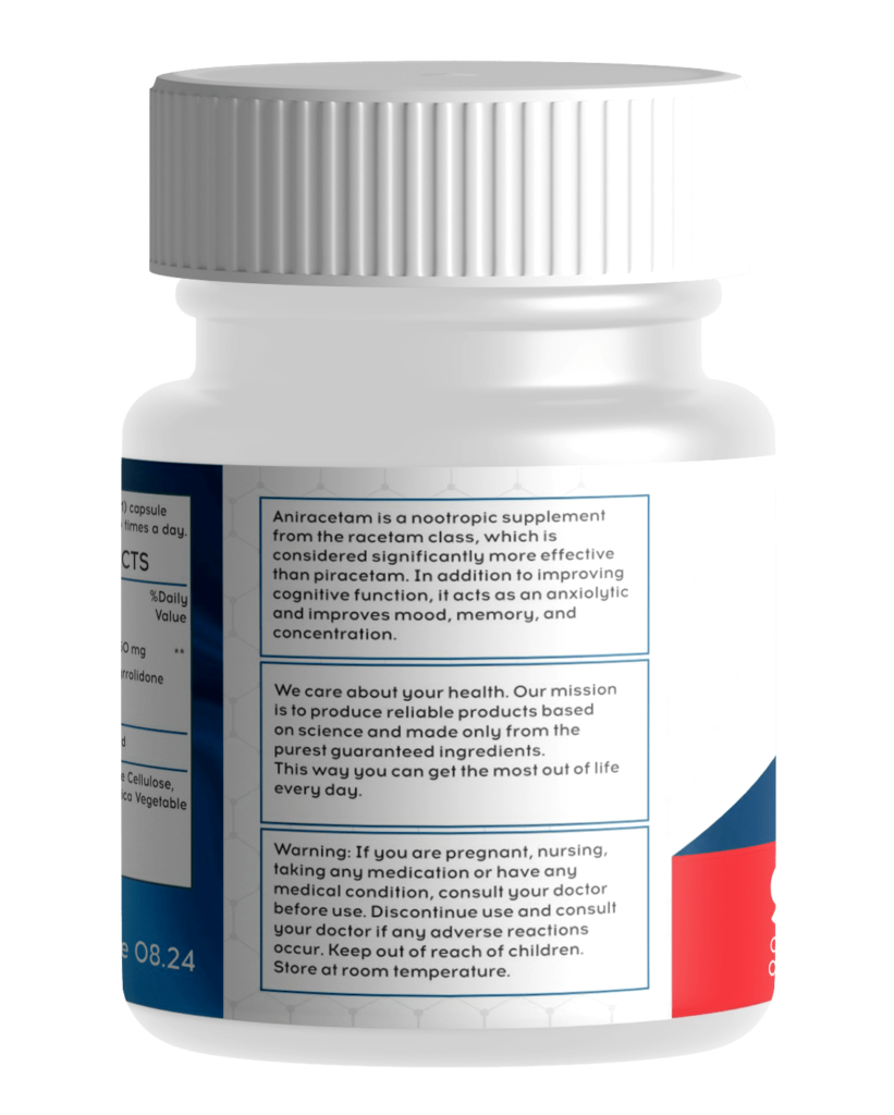 Aniracetam 90 капсул — это инновационный ноотроп, для улучшений когнитивных способностей (память, мотивацию, творческие способности) у здоровых людей.