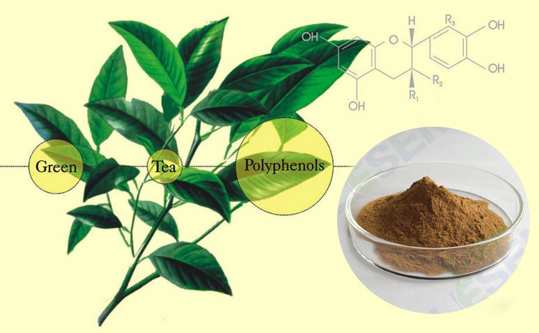 Экстракт зеленого чая представляет собой порошок, в котором содержится повышенное количество, биологически-активных, лекарственных, полезных для функционирования организма веществ и витаминов. Благодаря особой технологии изготовления из листьев чая, в данном продукте количество полифенолов достигает высокой концентрации — 98%. Полифенолы включают гидроксильные группы, которые являются антиоксидантами и связывают свободные радикалы, выполняя защитную функцию.