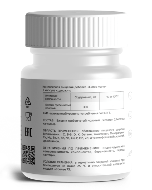 Для приготовления активированного тонкодисперсного порошка использованы дикорастущие плодовые тела ежовика гребенчатого, собранные в Приморье, Южной и Юго-Западной Сибири, на Кавказе и в Крыму. Сушка грибов ежовиков гребенчатых производится при температуре 30-35°С, что обеспечивает полное сохранение фармакологических качеств. Препарат содержит полный спектр компонентов: полисахариды, гликопротеины, эргостерол, тритерпеноиды и другие биоактивные вещества, обеспечивающие максимальную поддержку здоровья и устойчивый терапевтический (в том числе и психотерапевтический) эффект.