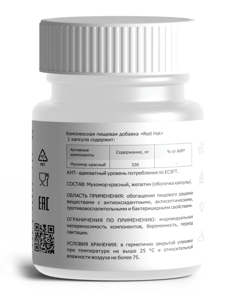 Микродозинг содержит оптимальное количество мухоморного порошка для терапии. Упаковка рассчитана на месячный курс. Капсулы принимают дважды в день по одной штуке – утром за час до еды для повышения энергии, вечером за час перед сном – для успокоения, улучшения качества сна.