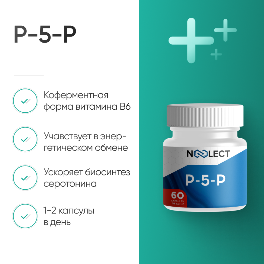Пиридоксал-5-фосфат (P-5-P)— биологически активная добавка, которая нормализует иммунитет, поддерживает устойчивость нервной системы, помогает функционированию сердечно-сосудистой системе и укрепляет костную ткань.