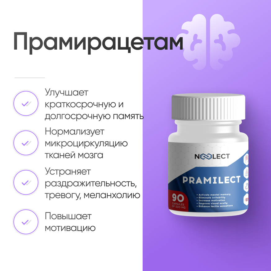 Прамирацетам (пирацетам) – это ноотропное средство, синтезированное на основе пирацетама. Прамирацетам (прамистар) представляет собой видоизмененную форму пирацетама семейства рацетамов. Разработан в 1984 году как средство борьбы с амнезией. Это сильный ноотроп, обладающий мягкой, сродни кофеину, стимуляцией, и улучшающий познавательные способности головного мозга. Вещество пирацетама применяется для лечения дефицита памяти у людей с сосудистыми деменциями и другими заболеваниями центральной нервной системы, в период восстановления после черепно-мозговой травмы, ишемического инсульта, различных когнитивных расстройств, эффективен в качестве антидепрессанта.