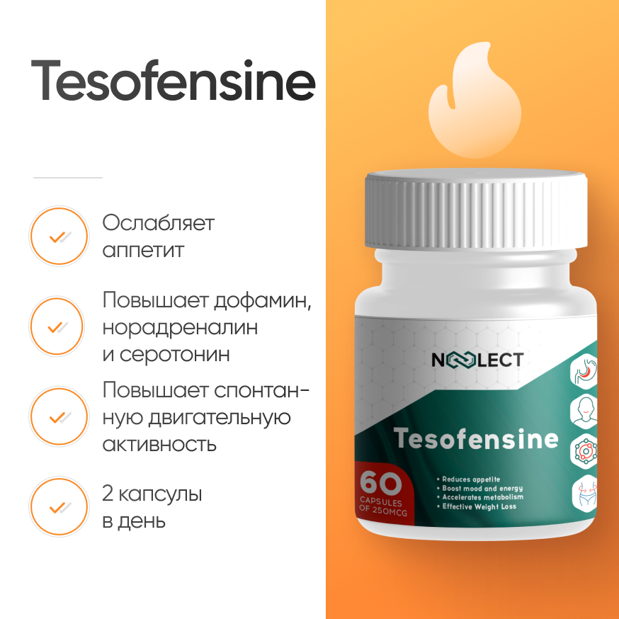 Механизм действия препарата основан на ингибировании обратного захвата нейротрансмиттеров. Тезофензин ингибирует обратный захват серотонина, норадреналина и дофамина в синапсах, что увеличивает их концентрацию в центральной нервной системе. Повышение уровней этих нейротрансмиттеров приводит к усилению чувства насыщения, снижению аппетита и увеличению термогенеза, что способствует снижению массы тела.