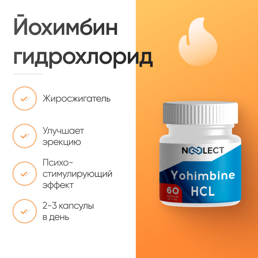 Йохимбин — производное вещество африканского дерева с названием йохимбе. Данное вещество помогает похудеть, расслабляет, снимает нервное напряжение, повышает мужскую потенцию. Сейчас Йохимбин активно используется для улучшения настроения, подвижности, регулировании сердечной деятельности и концентрации внимания.