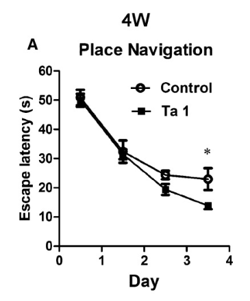 A. 4-недельные мыши, которым давали тимозин альфа-1, быстрее учатся выбираться из лабиринтов.