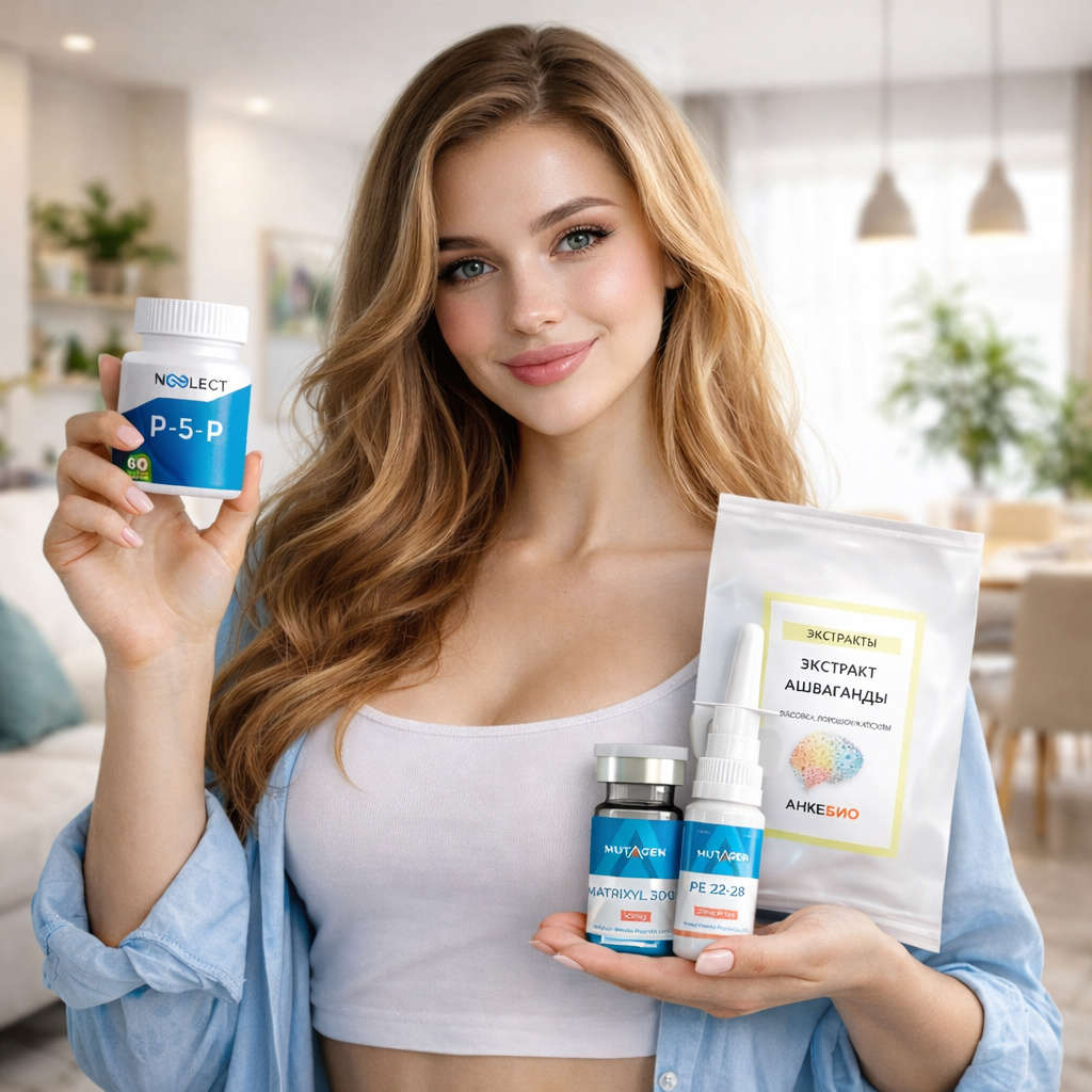 Курс собран для ситуаций, где основные задачи — снижение выраженности стресс-реакций, улучшение сна, а также восстановления и поддержки когнитивной устойчивости. Дополнительно включён компонент ухода за кожей.