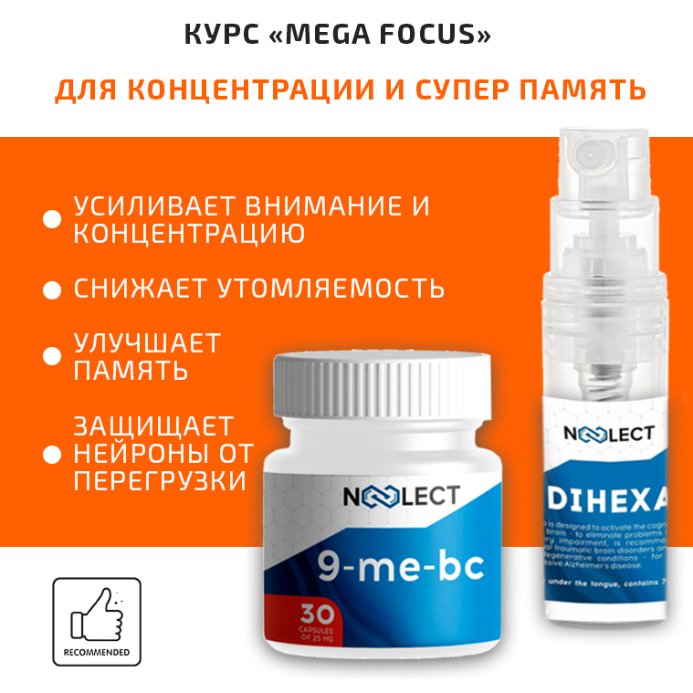 Сочетание DIHEXA и 9-Me-BC одновременно поддерживает нейротрофические и дофаминергические системы мозга, обеспечивая устойчивое улучшение концентрации, когнитивной выносливости и общей работоспособности. Это максимально простой и эффективный подход, позволяющий быстро ощутить результат даже при минимуме компонентов.