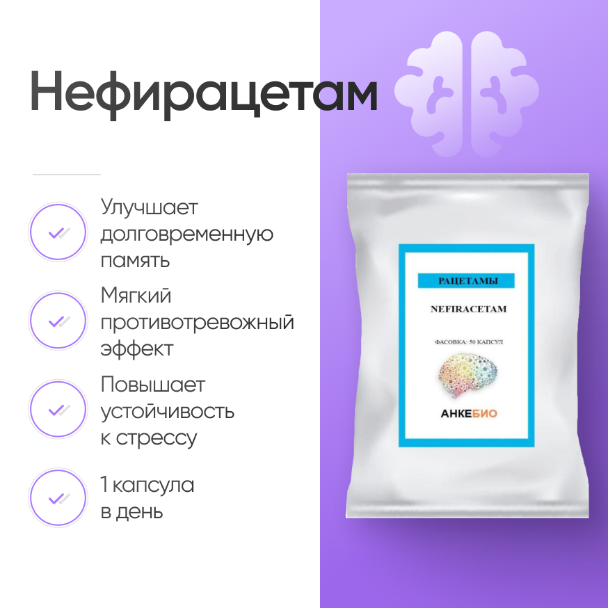 Нефирацетам входит в группу рецитамов. С помощью этого средства можно повысить обучаемость и улучшить когнитивные функции. Кроме этого Нефирацетам как действующее вещество характеризуется наличием нейропротекторного воздействия на организм. Применяют с целью улучшения памяти и лечения когнитивных нарушений.