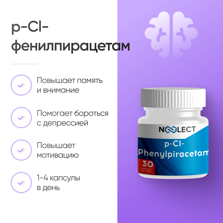 Главная / Витамины для мозга / Рацетамы / Ноотропы для креативности / p-Cl-phenylpiracetam (RGPU-95, Цебарацетам) 30 капсул