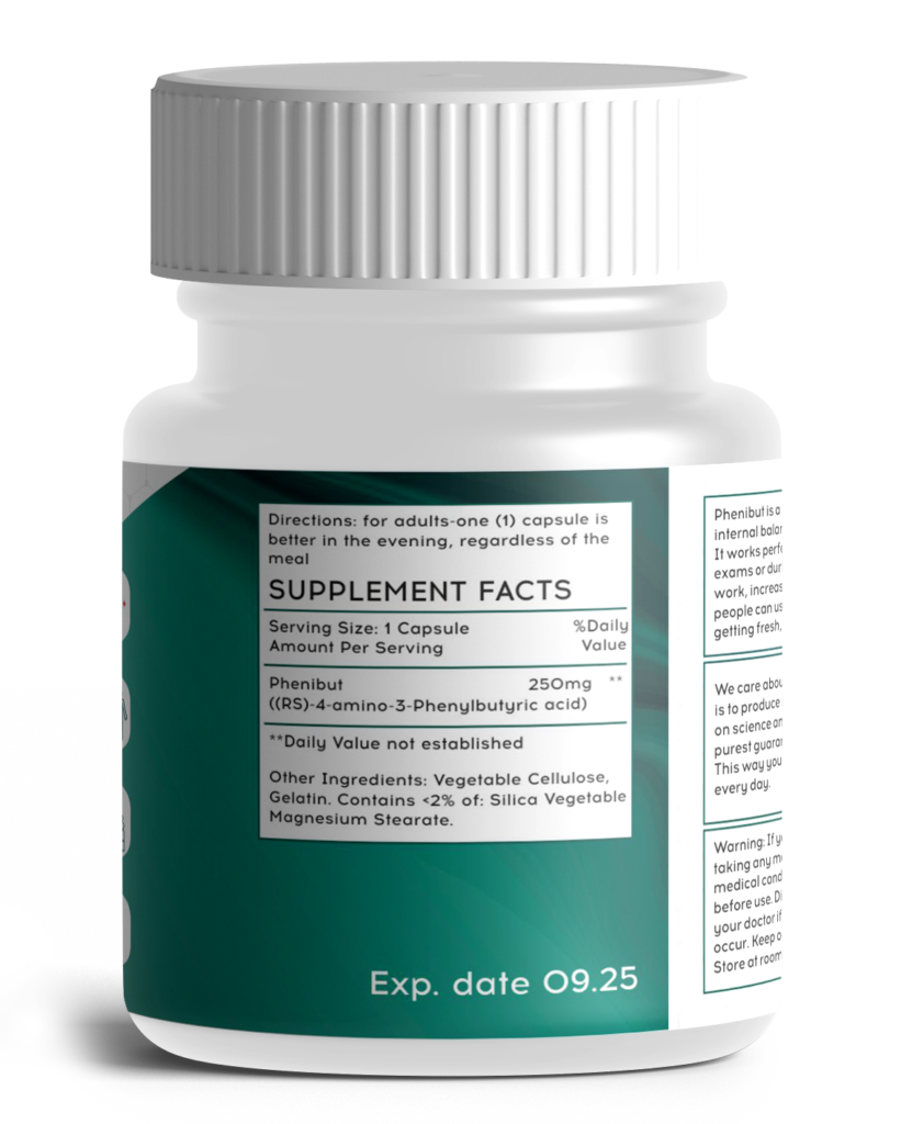 1 капсула содержит 250 мг β-фенил-γ-аминомасляной кислоты