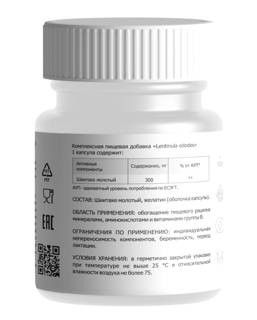 Состав: порошок гриба Шиитаке, желатиновая капсула